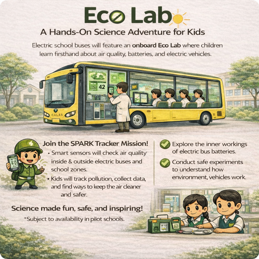 Electric buses for safe, worry-free journeys—Eco Lab for hands-on science and fun every day.
